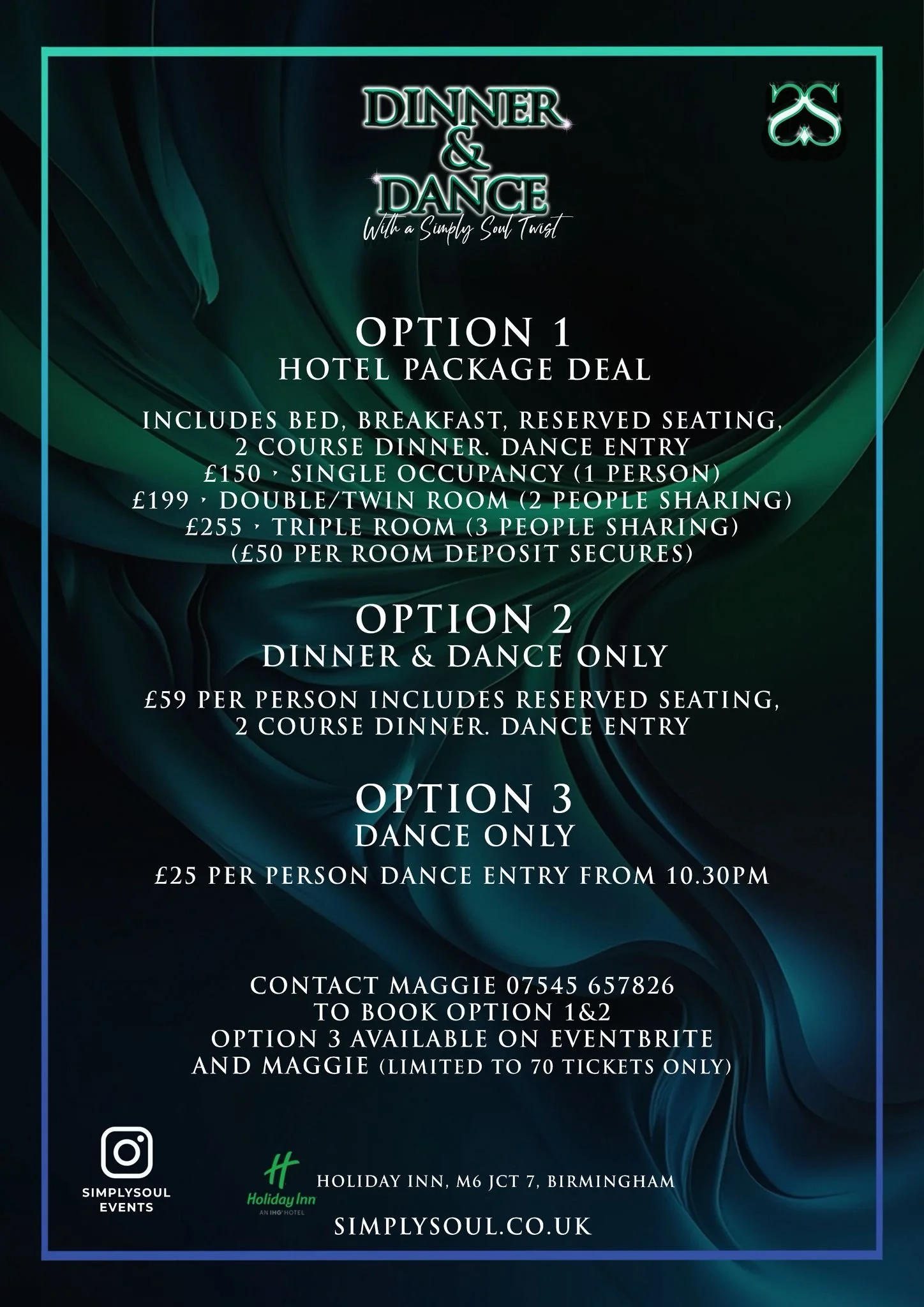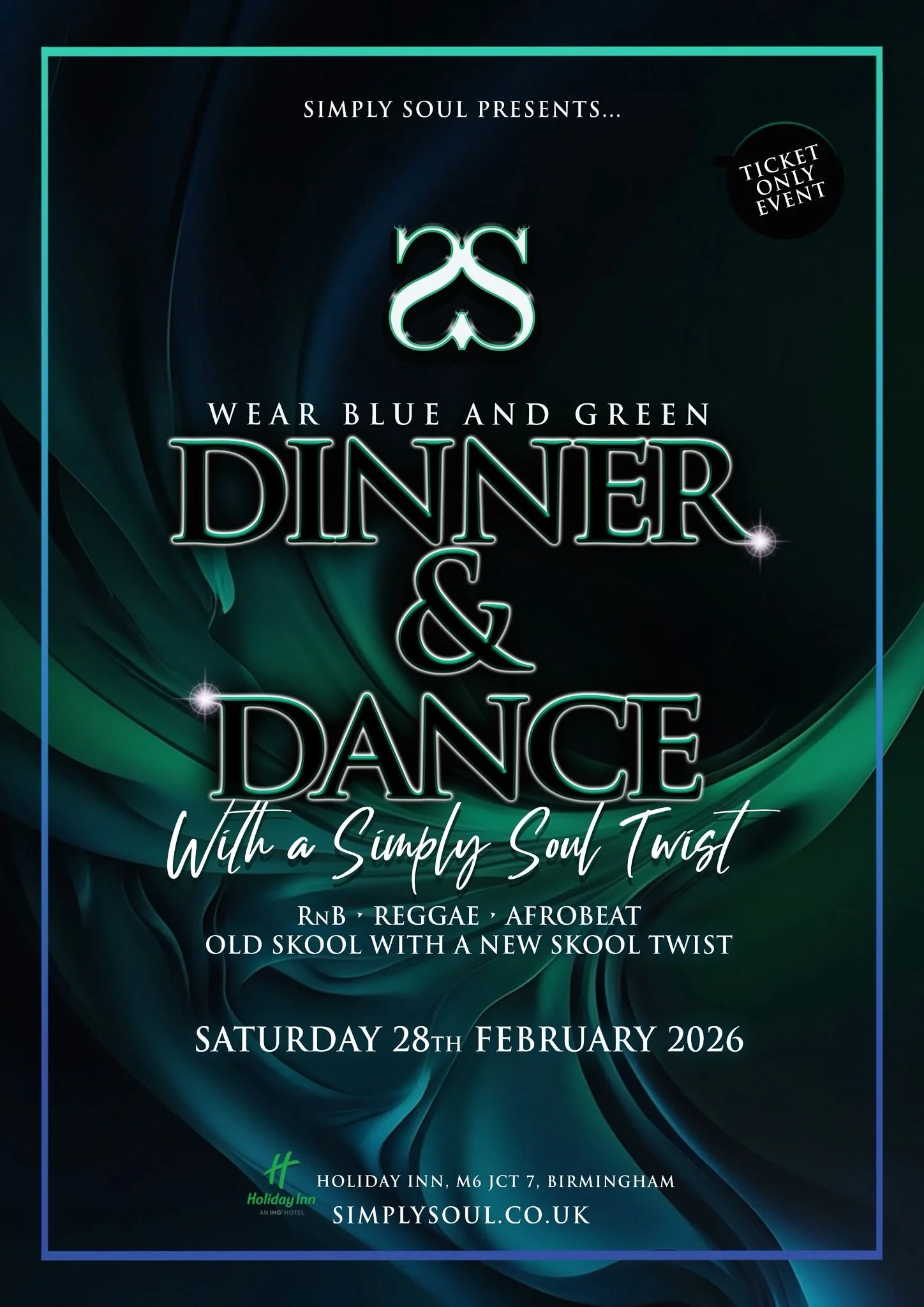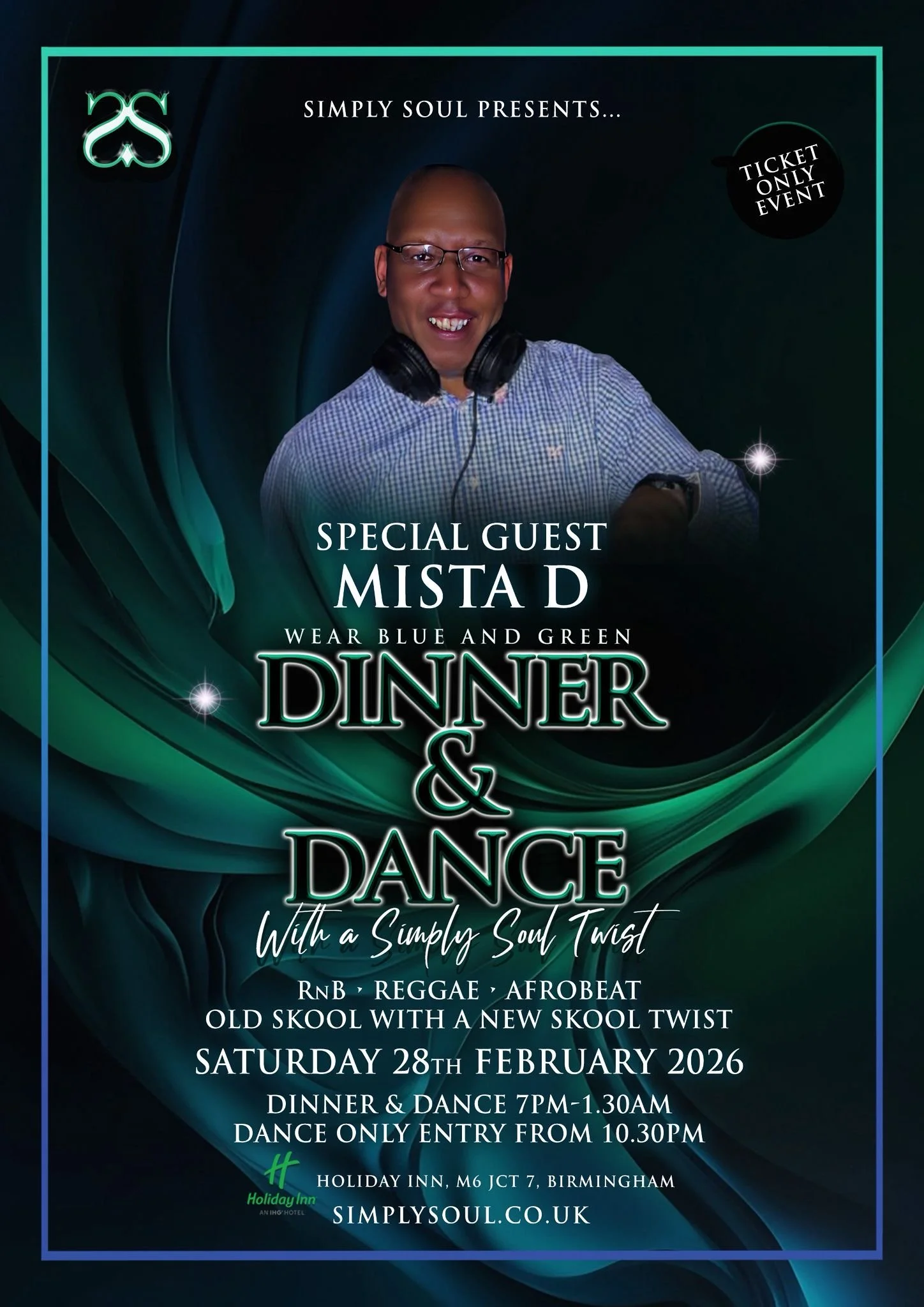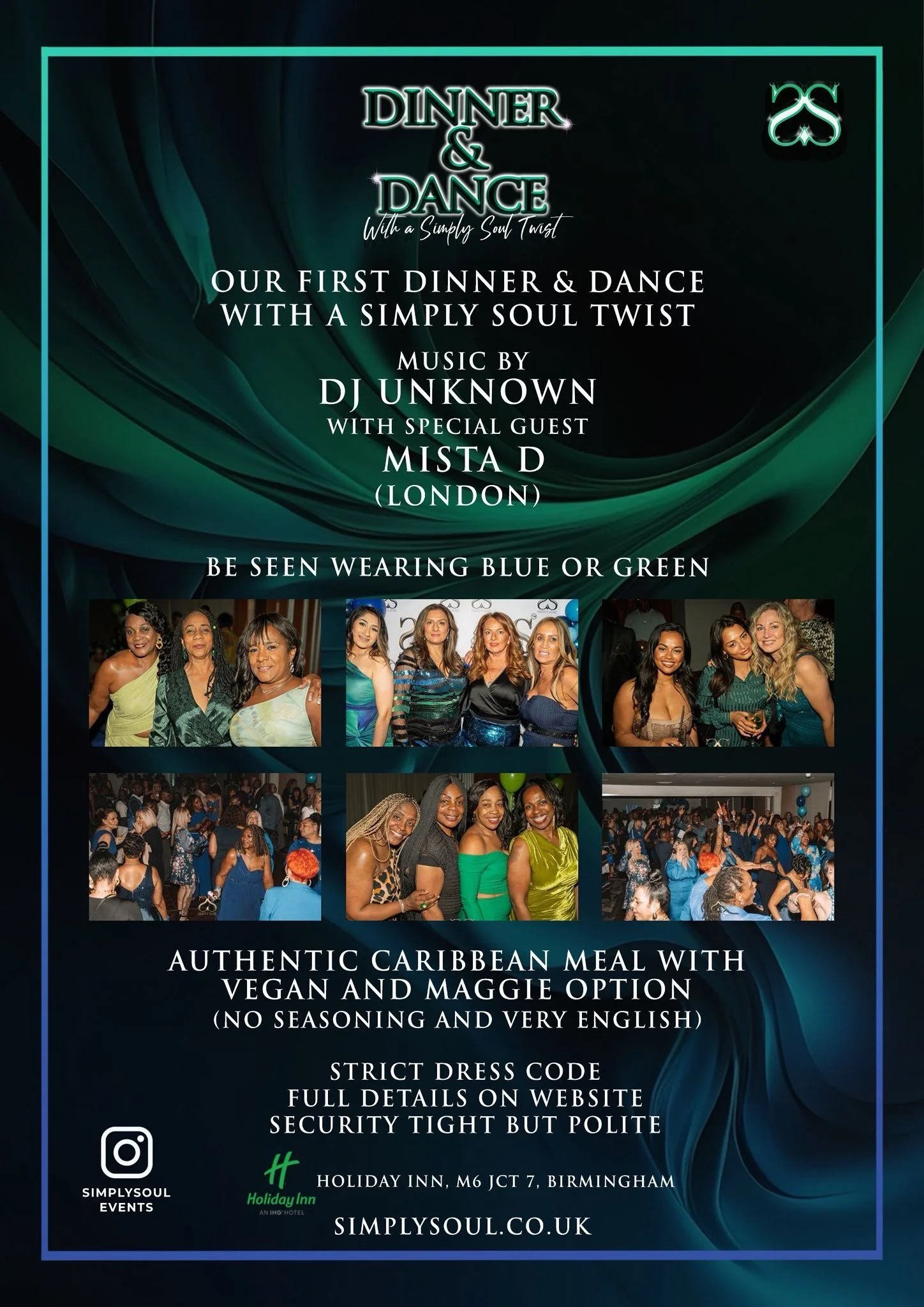Our first ever Dinner and Dance Simply Soul event with a special twist. An evening of RnB, Reggae and Afrobeat Old Skool Style with a New Skool Twist.